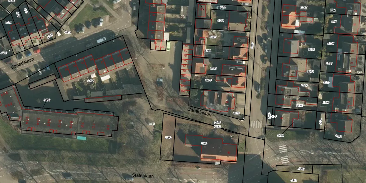Het perceel waarop Canadalaan 13-G staat heeft een oppervlakte van 1759 m². Dit is een zeer groot perceel. De perceeloppervlakte wordt geregistreerd door het Kadaster. Gedetailleerde informatie over de maten van dit perceel kunt u vinden in het rapport Kadastrale kaart met maatvoering van Canadalaan 13-G.