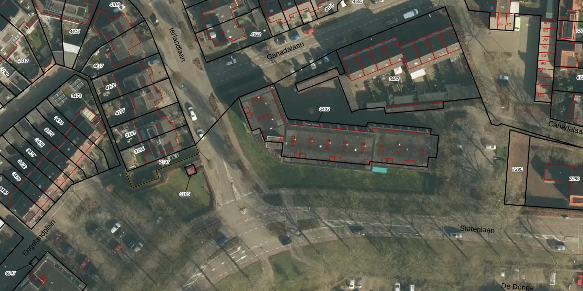 Het perceel waarop Canadalaan 65 staat heeft een oppervlakte van 895 m². Dit is een groot perceel. De perceeloppervlakte wordt geregistreerd door het Kadaster. Gedetailleerde informatie over de maten van dit perceel kunt u vinden in het rapport Kadastrale kaart met maatvoering van Canadalaan 65.