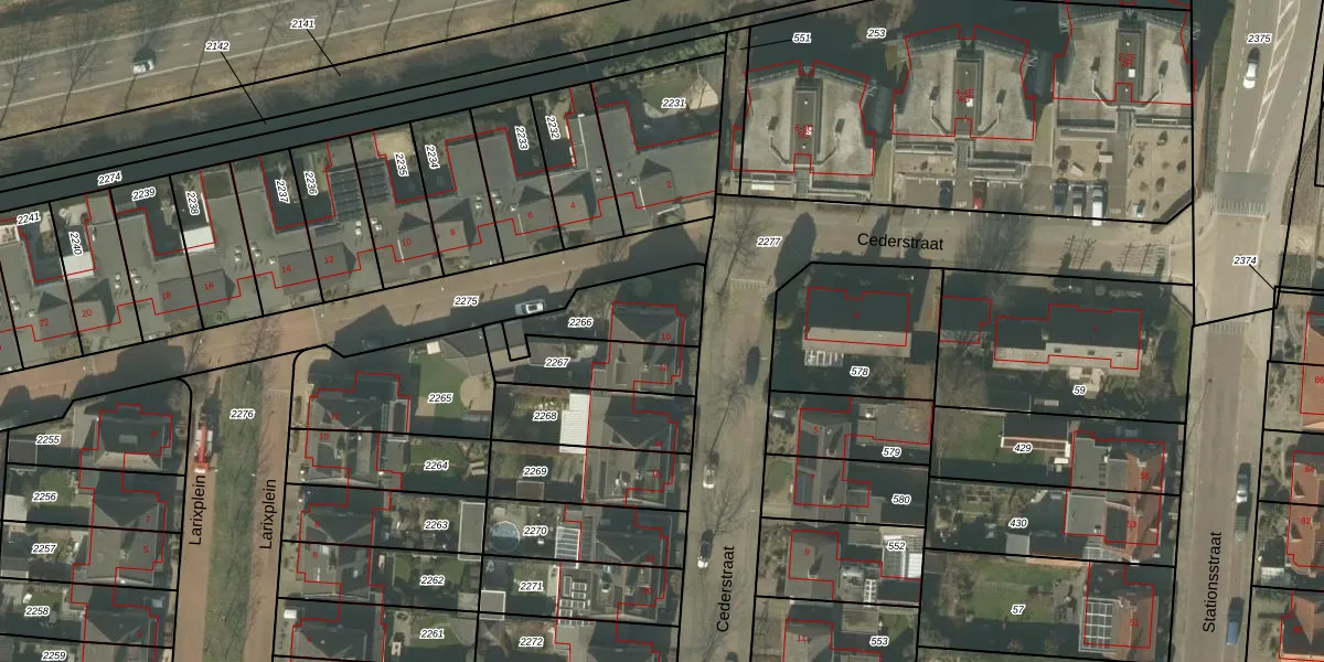 Cederstraat 10 is gelegen op kadastraal perceel DNN00H2266. Deze kadastrale aanduiding is uniek en wordt gebruikt door het Kadaster om eigendomsrechten en andere zakelijke rechten vast te leggen. Het perceel maakt onderdeel uit van de kadastrale gemeente Drunen.