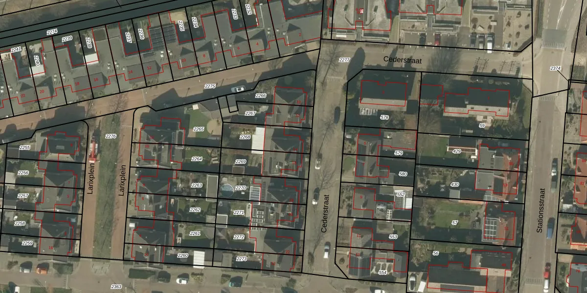 Het perceel waarop Cederstraat 14 staat heeft een oppervlakte van 265 m². Dit is een middelgroot perceel. De perceeloppervlakte wordt geregistreerd door het Kadaster. Gedetailleerde informatie over de maten van dit perceel kunt u vinden in het rapport Kadastrale kaart met maatvoering van Cederstraat 14.