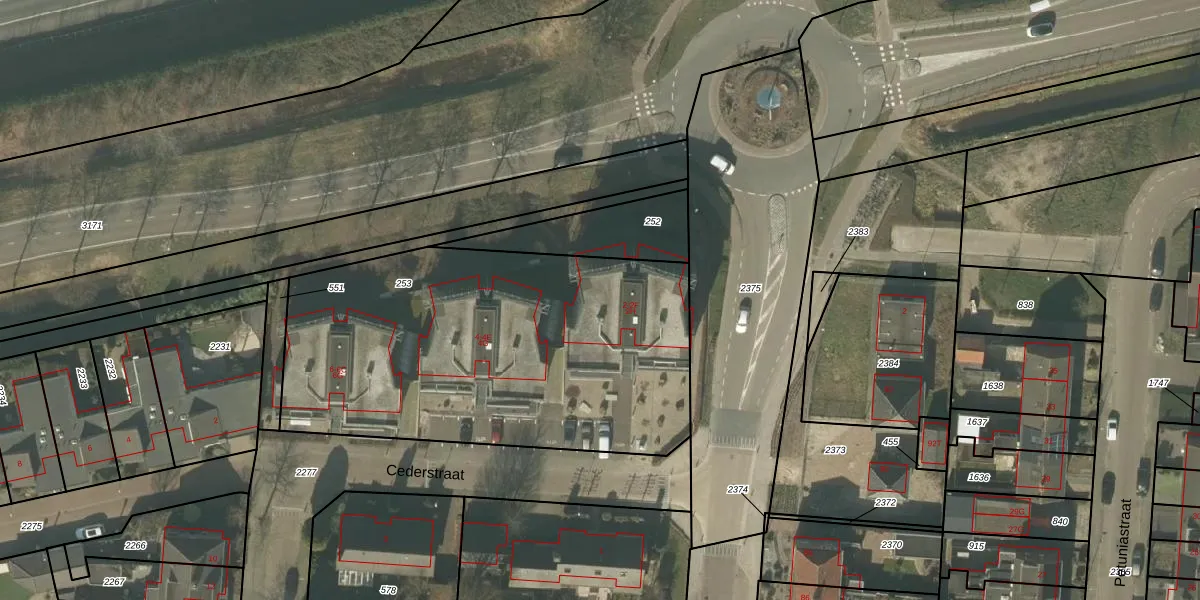 Het perceel waarop Cederstraat 2-D staat heeft een oppervlakte van 2110 m². Dit is een zeer groot perceel. De perceeloppervlakte wordt geregistreerd door het Kadaster. Gedetailleerde informatie over de maten van dit perceel kunt u vinden in het rapport Kadastrale kaart met maatvoering van Cederstraat 2-D.