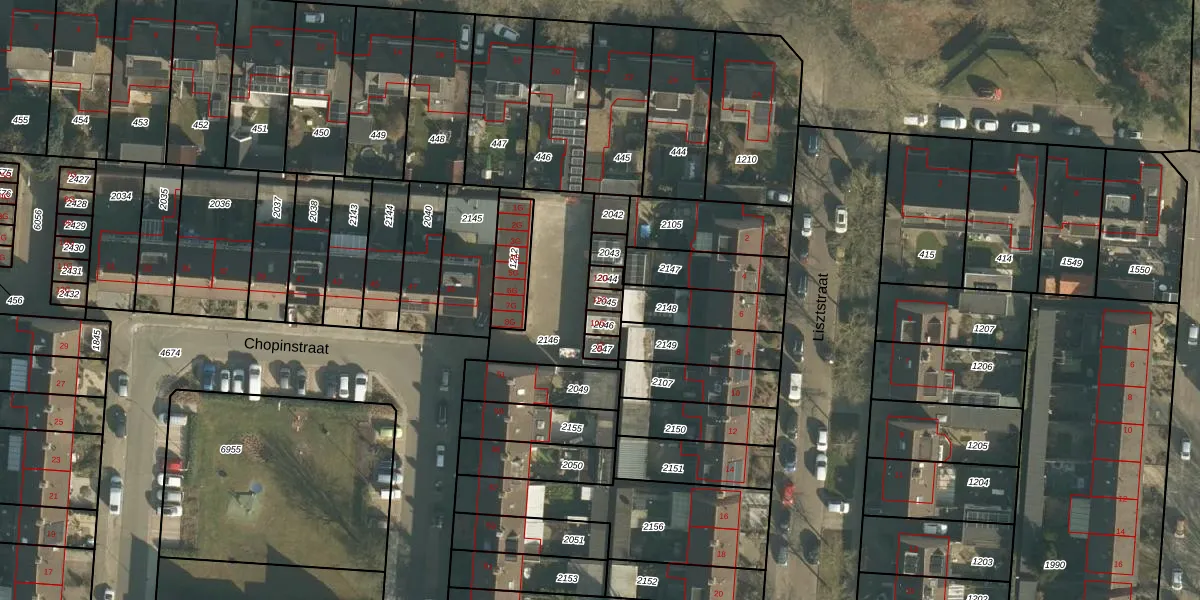 Het perceel waarop Chopinstraat 11-G staat heeft een oppervlakte van 21 m². Dit is een klein perceel. De perceeloppervlakte wordt geregistreerd door het Kadaster. Gedetailleerde informatie over de maten van dit perceel kunt u vinden in het rapport Kadastrale kaart met maatvoering van Chopinstraat 11-G.
