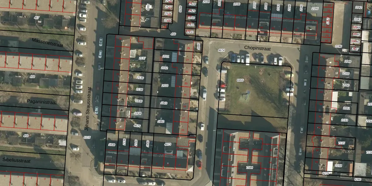 Het perceel waarop Chopinstraat 21 staat heeft een oppervlakte van 326 m². Dit is een groot perceel. De perceeloppervlakte wordt geregistreerd door het Kadaster. Gedetailleerde informatie over de maten van dit perceel kunt u vinden in het rapport Kadastrale kaart met maatvoering van Chopinstraat 21.