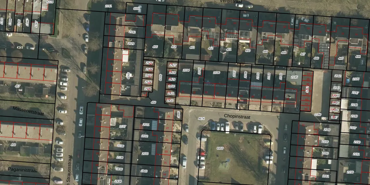 Het perceel waarop Chopinstraat 31 staat heeft een oppervlakte van 201 m². Dit is een middelgroot perceel. De perceeloppervlakte wordt geregistreerd door het Kadaster. Gedetailleerde informatie over de maten van dit perceel kunt u vinden in het rapport Kadastrale kaart met maatvoering van Chopinstraat 31.