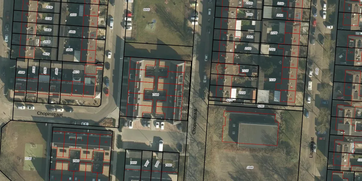 Chopinstraat 64 is gelegen op kadastraal perceel DNN00L7584. Deze kadastrale aanduiding is uniek en wordt gebruikt door het Kadaster om eigendomsrechten en andere zakelijke rechten vast te leggen. Het perceel maakt onderdeel uit van de kadastrale gemeente Drunen.