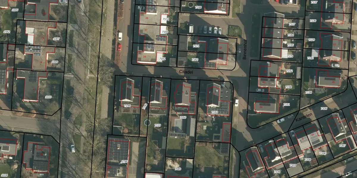 Het perceel waarop Citadel 6 staat heeft een oppervlakte van 714 m². Dit is een groot perceel. De perceeloppervlakte wordt geregistreerd door het Kadaster. Gedetailleerde informatie over de maten van dit perceel kunt u vinden in het rapport Kadastrale kaart met maatvoering van Citadel 6.