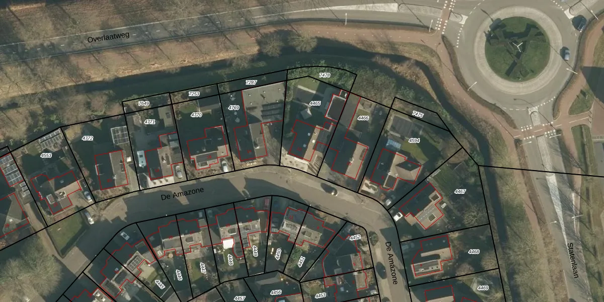 Het perceel waarop De Amazone 12 staat heeft een oppervlakte van 517 m². Dit is een groot perceel. De perceeloppervlakte wordt geregistreerd door het Kadaster. Gedetailleerde informatie over de maten van dit perceel kunt u vinden in het rapport Kadastrale kaart met maatvoering van De Amazone 12.