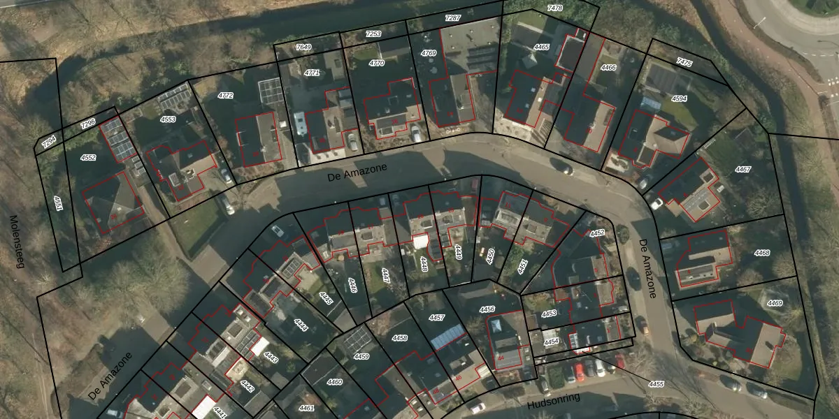 Het perceel waarop De Amazone 15 staat heeft een oppervlakte van 246 m². Dit is een middelgroot perceel. De perceeloppervlakte wordt geregistreerd door het Kadaster. Gedetailleerde informatie over de maten van dit perceel kunt u vinden in het rapport Kadastrale kaart met maatvoering van De Amazone 15.