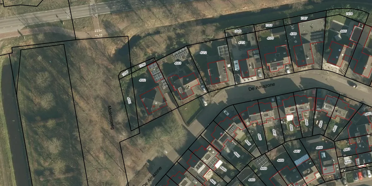 Het perceel waarop De Amazone 22 staat heeft een oppervlakte van 502 m². Dit is een groot perceel. De perceeloppervlakte wordt geregistreerd door het Kadaster. Gedetailleerde informatie over de maten van dit perceel kunt u vinden in het rapport Kadastrale kaart met maatvoering van De Amazone 22.