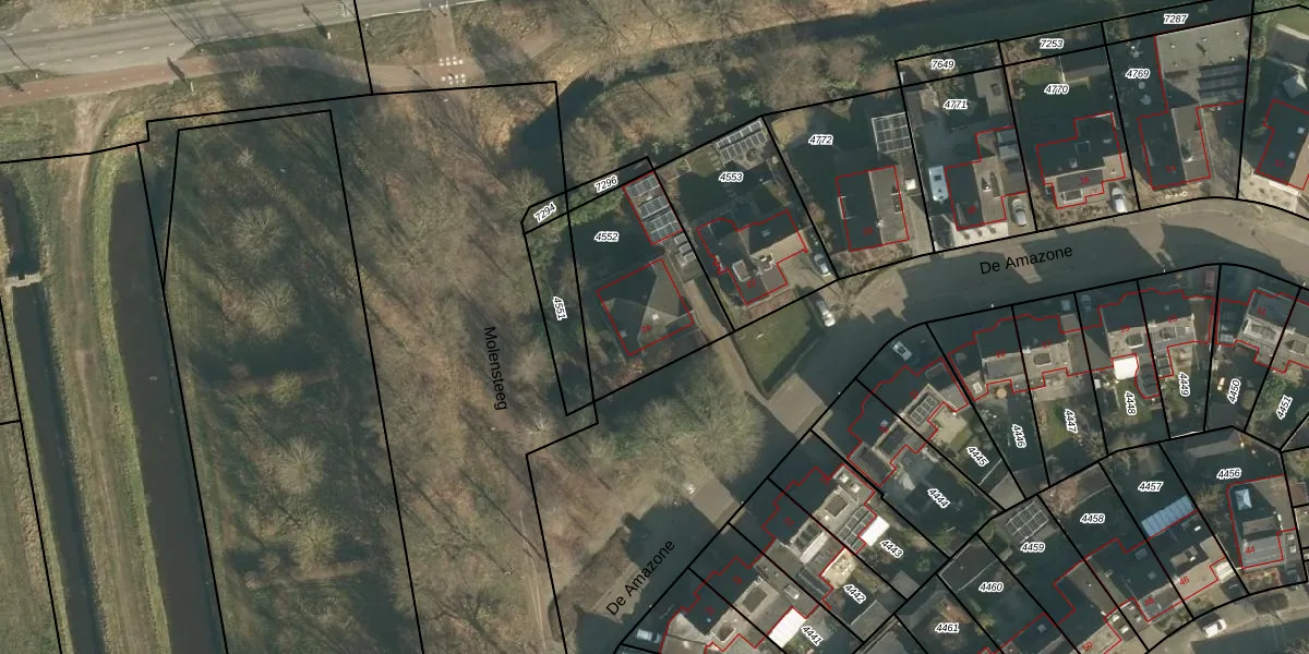 Het perceel waarop De Amazone 24 staat heeft een oppervlakte van 536 m². Dit is een groot perceel. De perceeloppervlakte wordt geregistreerd door het Kadaster. Gedetailleerde informatie over de maten van dit perceel kunt u vinden in het rapport Kadastrale kaart met maatvoering van De Amazone 24.