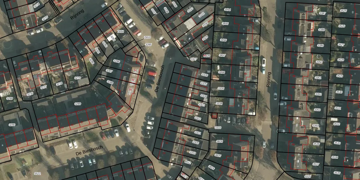 De Biesbosch 13 is gelegen op kadastraal perceel DNN00L3324. Deze kadastrale aanduiding is uniek en wordt gebruikt door het Kadaster om eigendomsrechten en andere zakelijke rechten vast te leggen. Het perceel maakt onderdeel uit van de kadastrale gemeente Drunen.