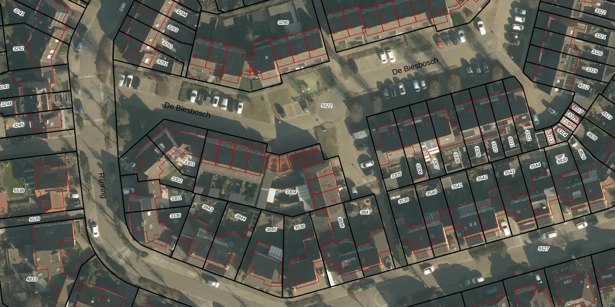 De Biesbosch 15-G is gelegen op kadastraal perceel DNN00L3304. Deze kadastrale aanduiding is uniek en wordt gebruikt door het Kadaster om eigendomsrechten en andere zakelijke rechten vast te leggen. Het perceel maakt onderdeel uit van de kadastrale gemeente Drunen.