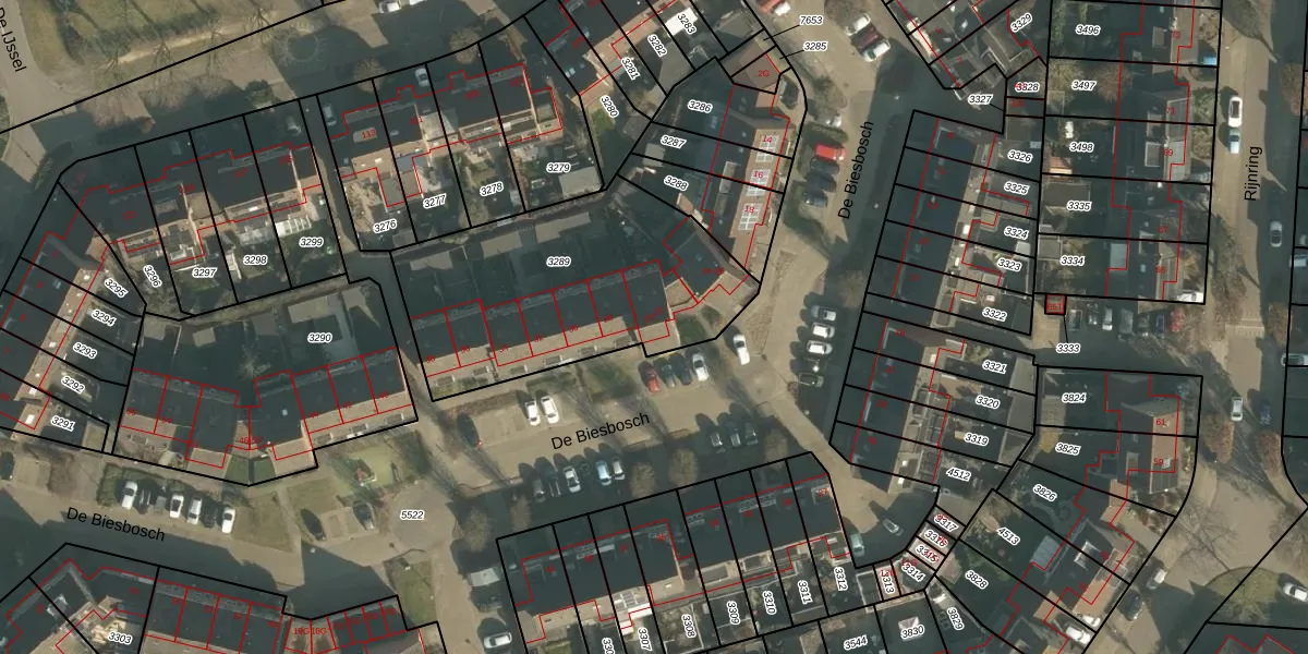 De Biesbosch 20 is gelegen op kadastraal perceel DNN00L3289. Deze kadastrale aanduiding is uniek en wordt gebruikt door het Kadaster om eigendomsrechten en andere zakelijke rechten vast te leggen. Het perceel maakt onderdeel uit van de kadastrale gemeente Drunen.
