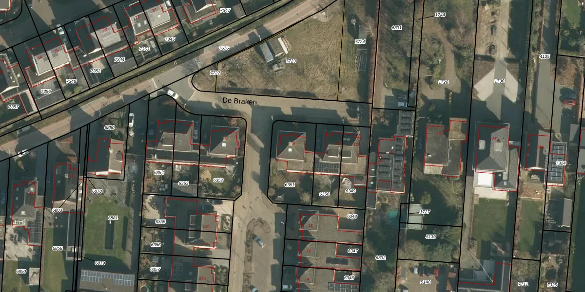 Het perceel waarop De Braken 8 staat heeft een oppervlakte van 426 m². Dit is een groot perceel. De perceeloppervlakte wordt geregistreerd door het Kadaster. Gedetailleerde informatie over de maten van dit perceel kunt u vinden in het rapport Kadastrale kaart met maatvoering van De Braken 8.