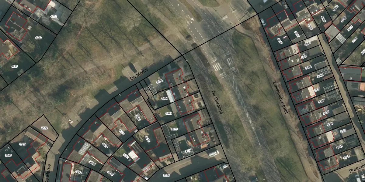 Gebruik de zoekbalk of klik op een perceel voor informatie over de adressen binnen dit perceel.