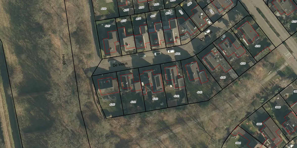 De Indus 11 is gelegen op kadastraal perceel DNN00L4243. Deze kadastrale aanduiding is uniek en wordt gebruikt door het Kadaster om eigendomsrechten en andere zakelijke rechten vast te leggen. Het perceel maakt onderdeel uit van de kadastrale gemeente Drunen.