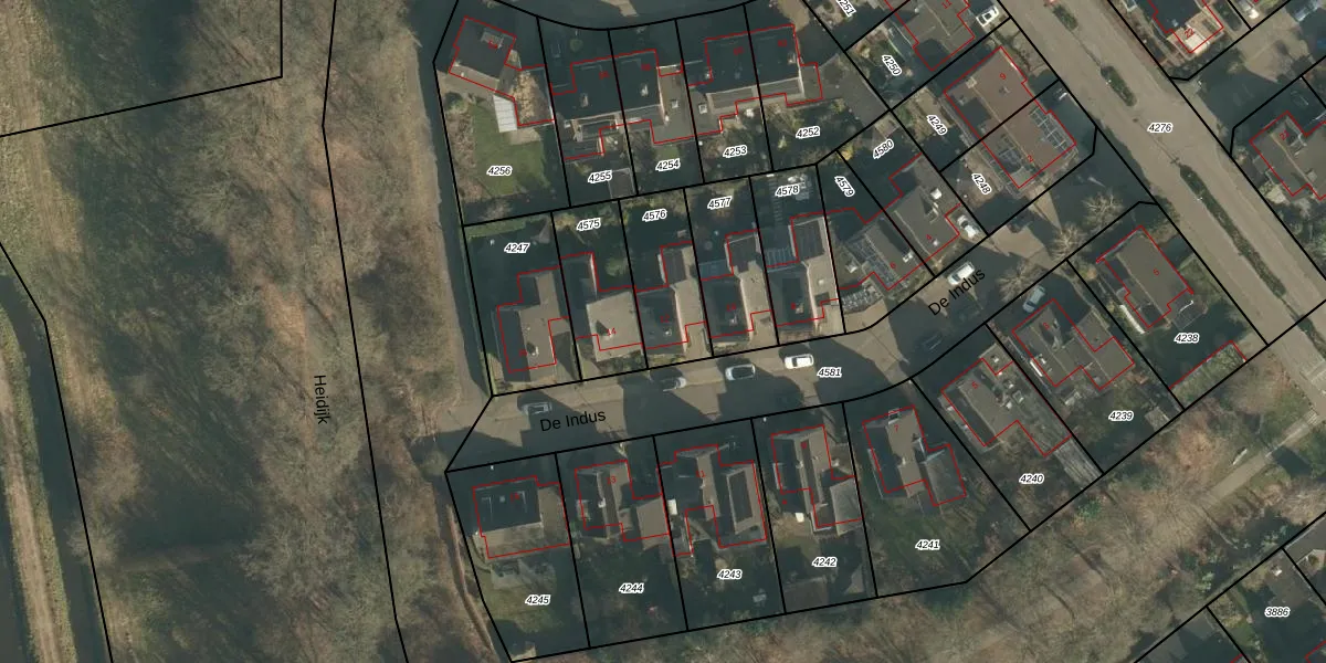 De Indus 12 is gelegen op kadastraal perceel DNN00L4576. Deze kadastrale aanduiding is uniek en wordt gebruikt door het Kadaster om eigendomsrechten en andere zakelijke rechten vast te leggen. Het perceel maakt onderdeel uit van de kadastrale gemeente Drunen.