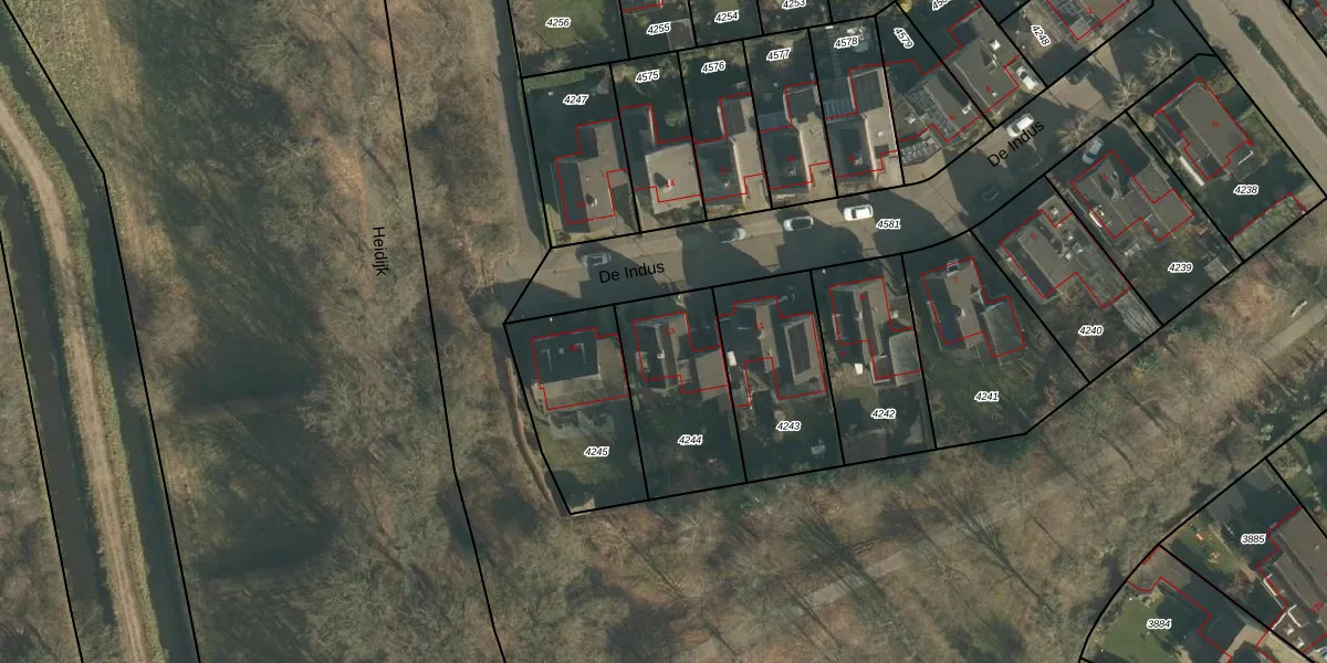 De Indus 13 is gelegen op kadastraal perceel DNN00L4244. Deze kadastrale aanduiding is uniek en wordt gebruikt door het Kadaster om eigendomsrechten en andere zakelijke rechten vast te leggen. Het perceel maakt onderdeel uit van de kadastrale gemeente Drunen.