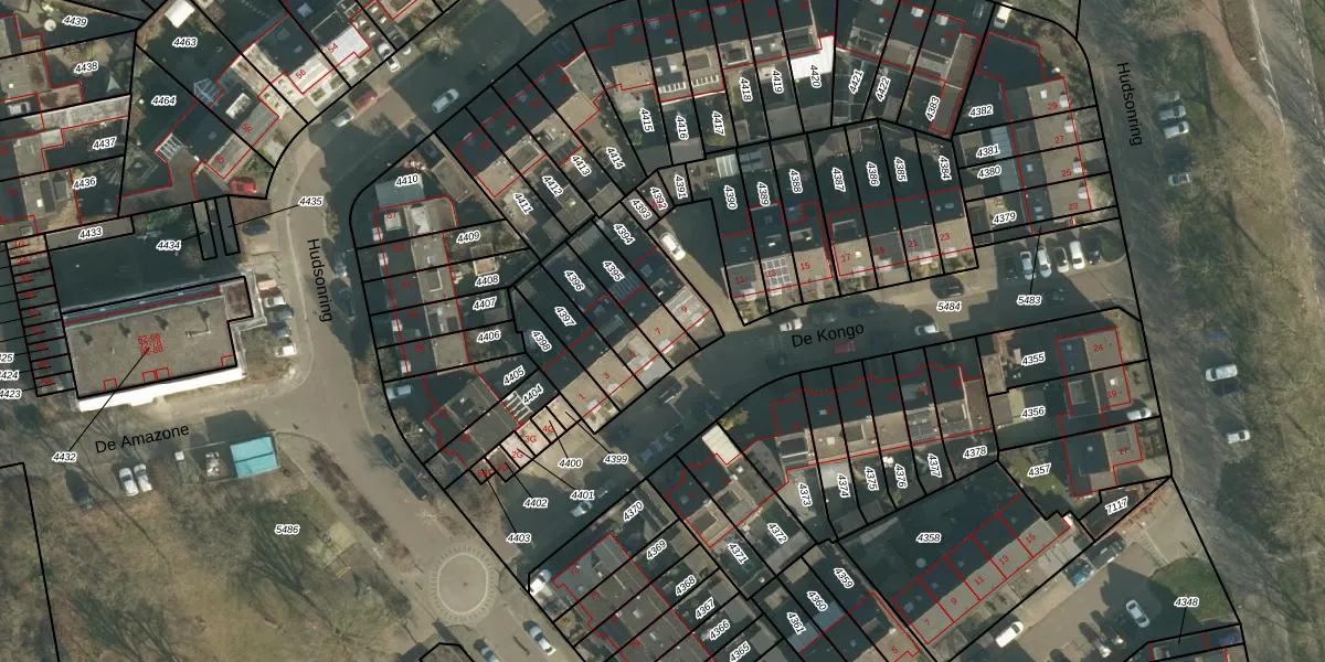 Gebruik de zoekbalk of klik op een perceel voor informatie over de adressen binnen dit perceel.