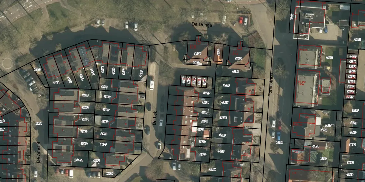 De Lek 1 is gelegen op kadastraal perceel DNN00L3507. Deze kadastrale aanduiding is uniek en wordt gebruikt door het Kadaster om eigendomsrechten en andere zakelijke rechten vast te leggen. Het perceel maakt onderdeel uit van de kadastrale gemeente Drunen.