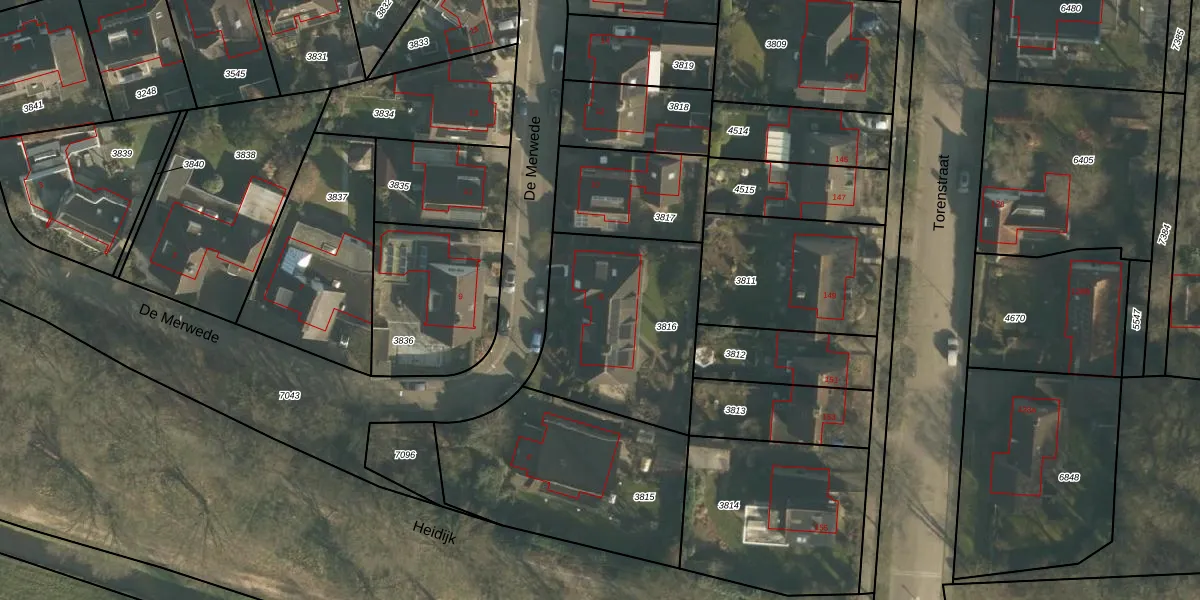 De Merwede 8 is gelegen op kadastraal perceel DNN00L3816. Deze kadastrale aanduiding is uniek en wordt gebruikt door het Kadaster om eigendomsrechten en andere zakelijke rechten vast te leggen. Het perceel maakt onderdeel uit van de kadastrale gemeente Drunen.