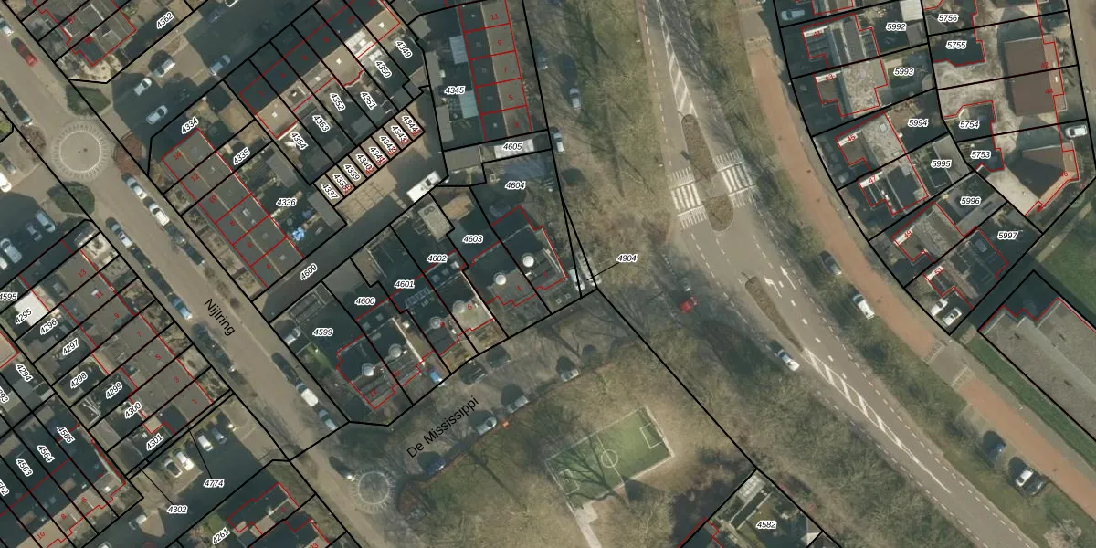 Het perceel waarop De Mississippi 2 staat heeft een oppervlakte van 337 m². Dit is een groot perceel. De perceeloppervlakte wordt geregistreerd door het Kadaster. Gedetailleerde informatie over de maten van dit perceel kunt u vinden in het rapport Kadastrale kaart met maatvoering van De Mississippi 2.