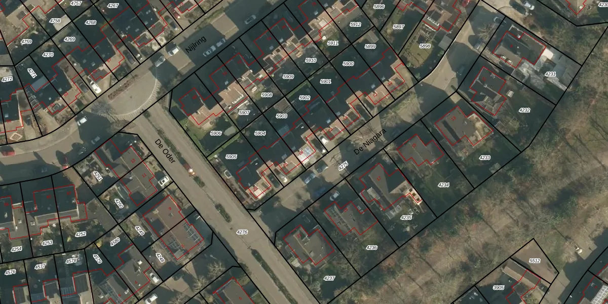 Het perceel waarop De Niagara 18 staat heeft een oppervlakte van 218 m². Dit is een middelgroot perceel. De perceeloppervlakte wordt geregistreerd door het Kadaster. Gedetailleerde informatie over de maten van dit perceel kunt u vinden in het rapport Kadastrale kaart met maatvoering van De Niagara 18.