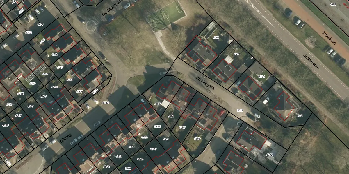 Het perceel waarop De Niagara 2 staat heeft een oppervlakte van 286 m². Dit is een middelgroot perceel. De perceeloppervlakte wordt geregistreerd door het Kadaster. Gedetailleerde informatie over de maten van dit perceel kunt u vinden in het rapport Kadastrale kaart met maatvoering van De Niagara 2.