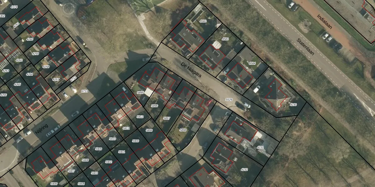 Het perceel waarop De Niagara 6 staat heeft een oppervlakte van 269 m². Dit is een middelgroot perceel. De perceeloppervlakte wordt geregistreerd door het Kadaster. Gedetailleerde informatie over de maten van dit perceel kunt u vinden in het rapport Kadastrale kaart met maatvoering van De Niagara 6.