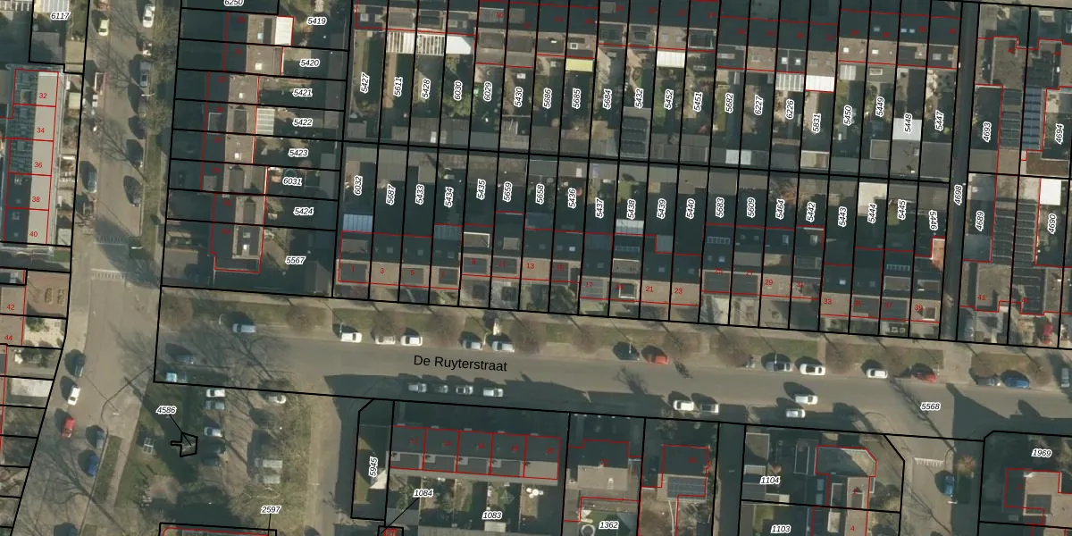Het perceel waarop De Ruyterstraat 13 staat heeft een oppervlakte van 164 m². Dit is een middelgroot perceel. De perceeloppervlakte wordt geregistreerd door het Kadaster. Gedetailleerde informatie over de maten van dit perceel kunt u vinden in het rapport Kadastrale kaart met maatvoering van De Ruyterstraat 13.