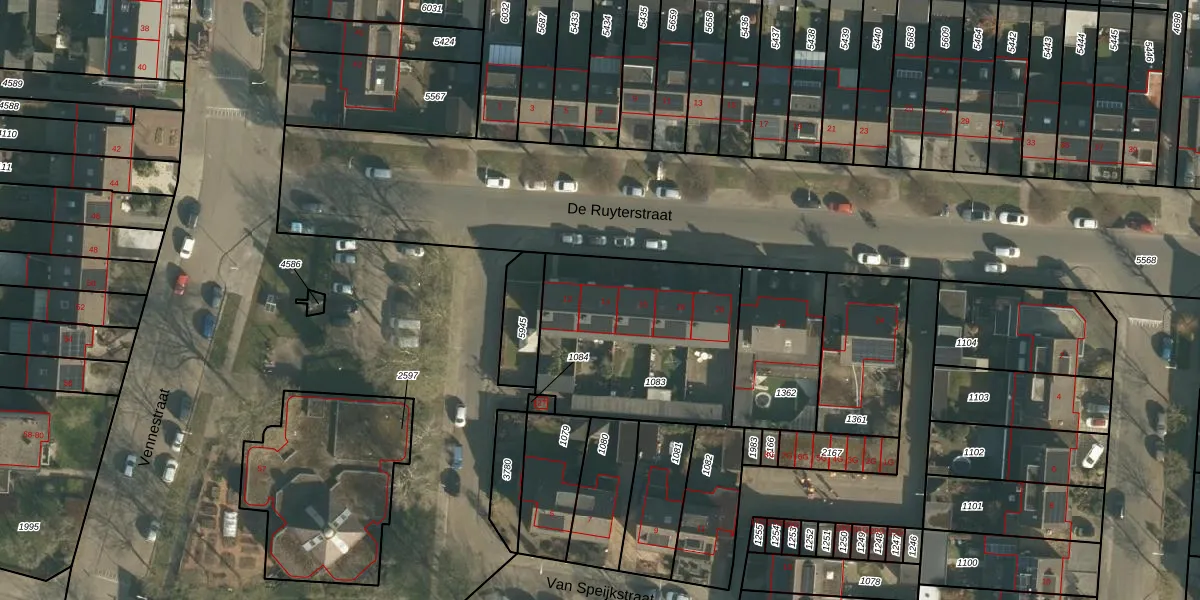 Het perceel waarop De Ruyterstraat 14 staat heeft een oppervlakte van 875 m². Dit is een groot perceel. De perceeloppervlakte wordt geregistreerd door het Kadaster. Gedetailleerde informatie over de maten van dit perceel kunt u vinden in het rapport Kadastrale kaart met maatvoering van De Ruyterstraat 14.