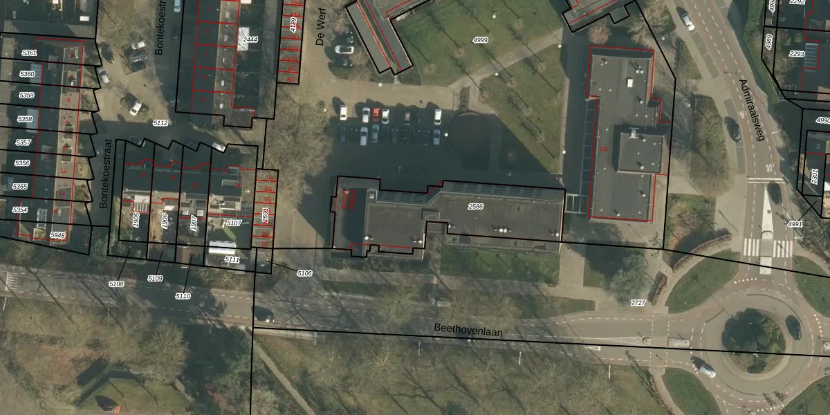 Het perceel waarop De Werf 25 staat heeft een oppervlakte van 759 m². Dit is een groot perceel. De perceeloppervlakte wordt geregistreerd door het Kadaster. Gedetailleerde informatie over de maten van dit perceel kunt u vinden in het rapport Kadastrale kaart met maatvoering van De Werf 25.