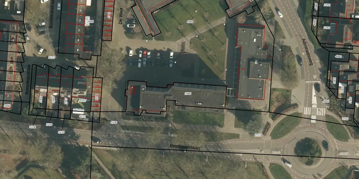 Het perceel waarop De Werf 33 staat heeft een oppervlakte van 759 m². Dit is een groot perceel. De perceeloppervlakte wordt geregistreerd door het Kadaster. Gedetailleerde informatie over de maten van dit perceel kunt u vinden in het rapport Kadastrale kaart met maatvoering van De Werf 33.