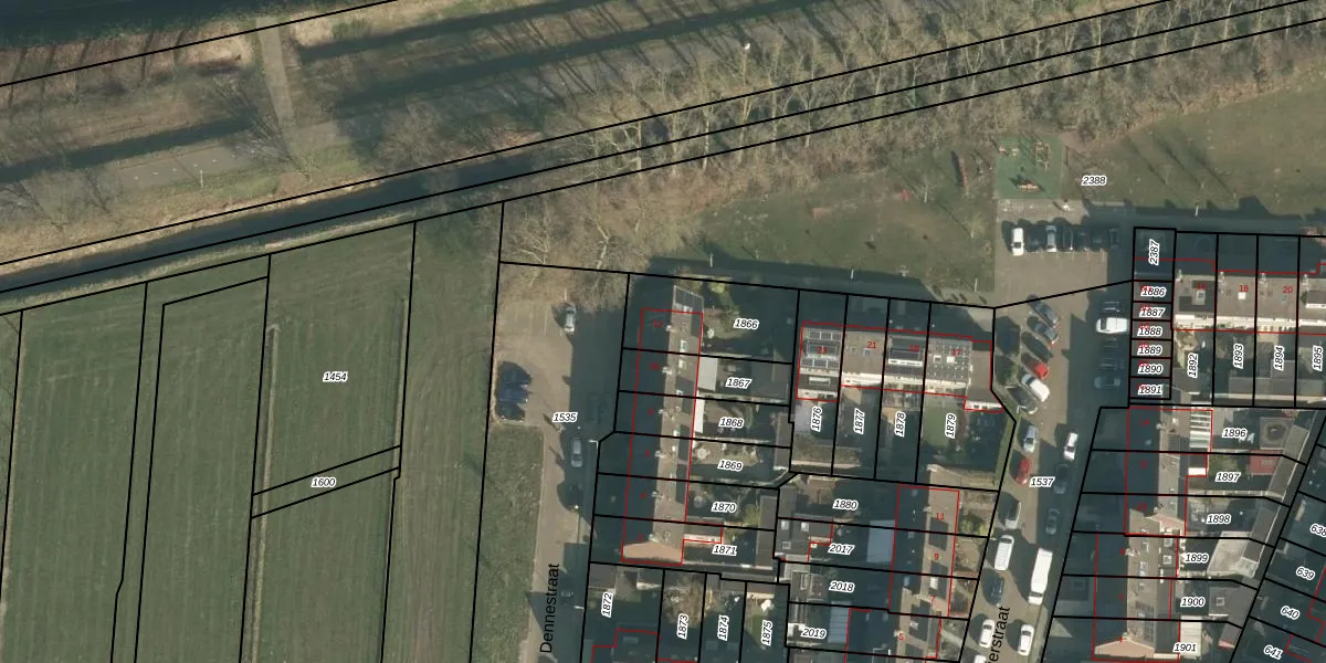 Dennestraat 12 is gelegen op kadastraal perceel DNN00H1866. Deze kadastrale aanduiding is uniek en wordt gebruikt door het Kadaster om eigendomsrechten en andere zakelijke rechten vast te leggen. Het perceel maakt onderdeel uit van de kadastrale gemeente Drunen.