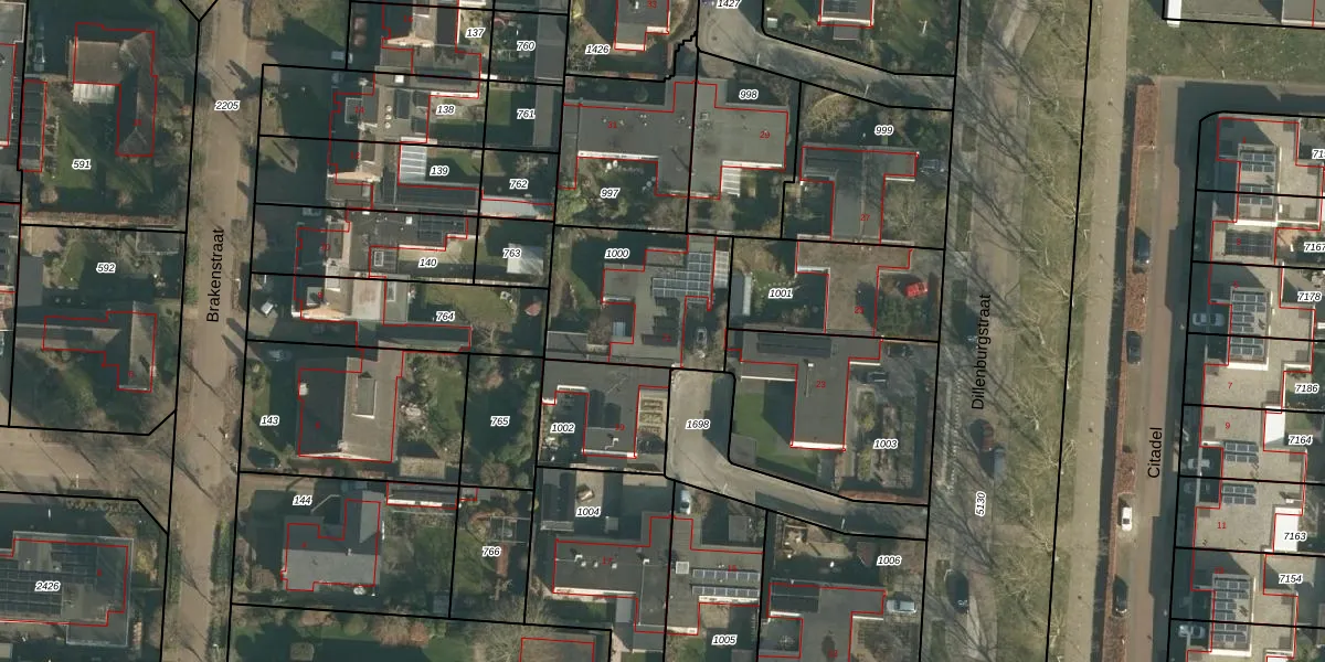 Gebruik de zoekbalk of klik op een perceel voor informatie over de adressen binnen dit perceel.
