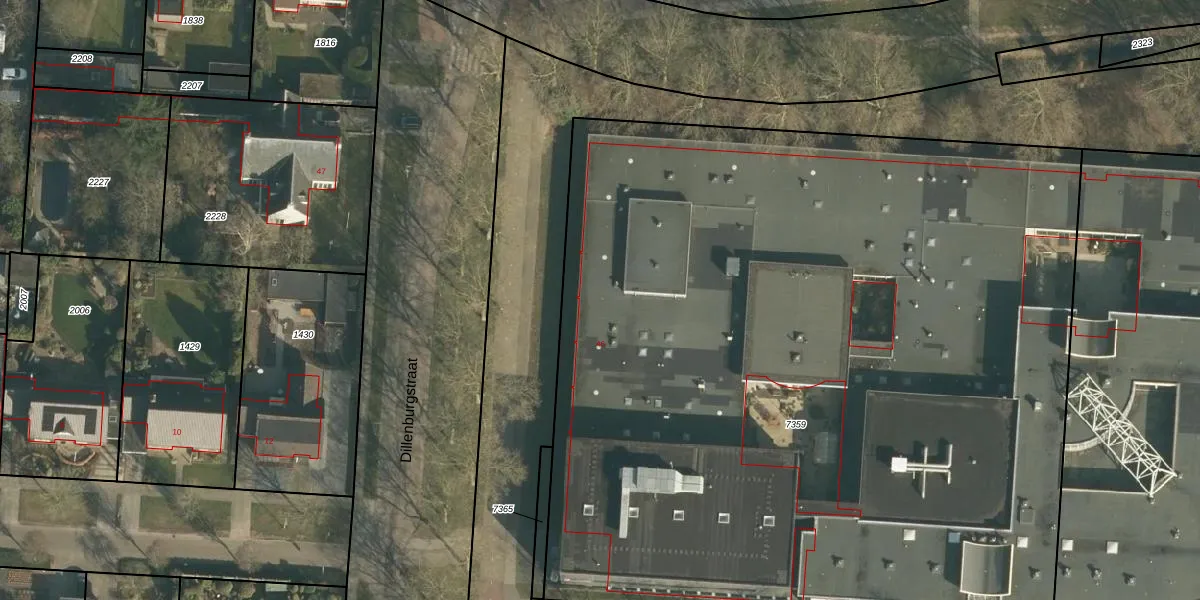 Het perceel waarop Dillenburgstraat 46 staat heeft een oppervlakte van 6828 m². Dit is een zeer groot perceel. De perceeloppervlakte wordt geregistreerd door het Kadaster. Gedetailleerde informatie over de maten van dit perceel kunt u vinden in het rapport Kadastrale kaart met maatvoering van Dillenburgstraat 46.