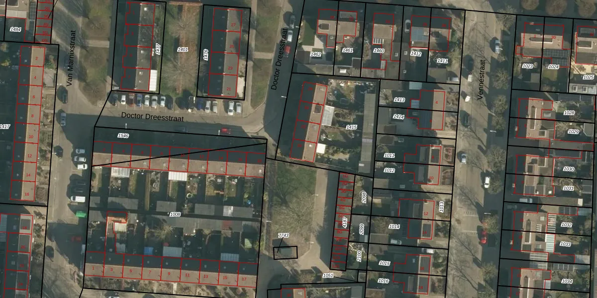 Doctor Dreesstraat 20 is gelegen op kadastraal perceel DNN00L1415. Deze kadastrale aanduiding is uniek en wordt gebruikt door het Kadaster om eigendomsrechten en andere zakelijke rechten vast te leggen. Het perceel maakt onderdeel uit van de kadastrale gemeente Drunen.