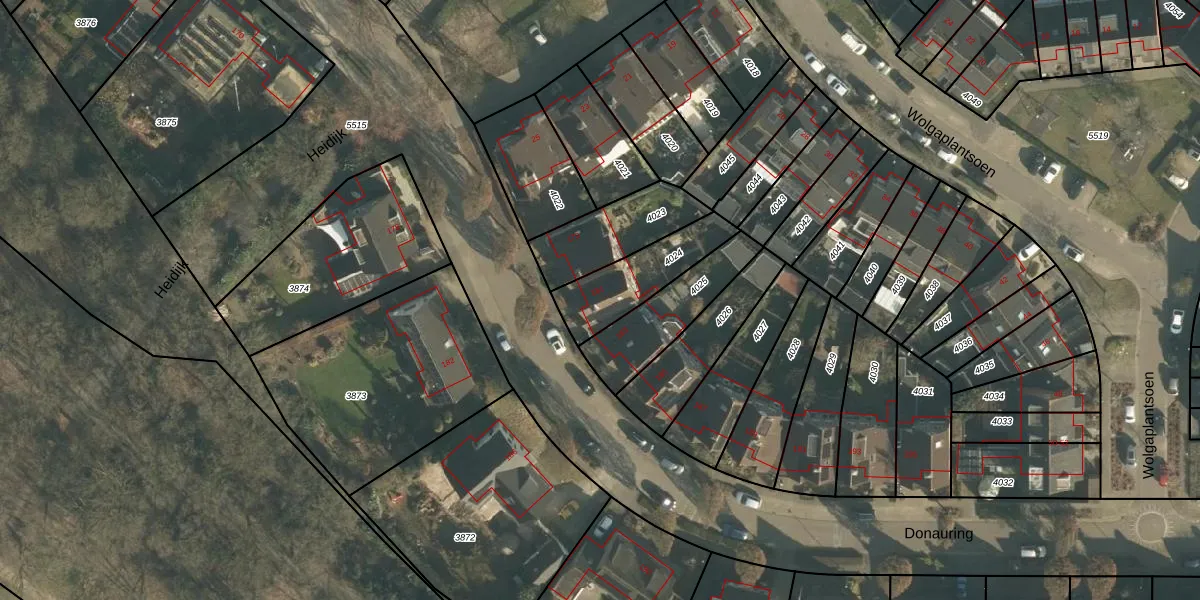 Gebruik de zoekbalk of klik op een perceel voor informatie over de adressen binnen dit perceel.