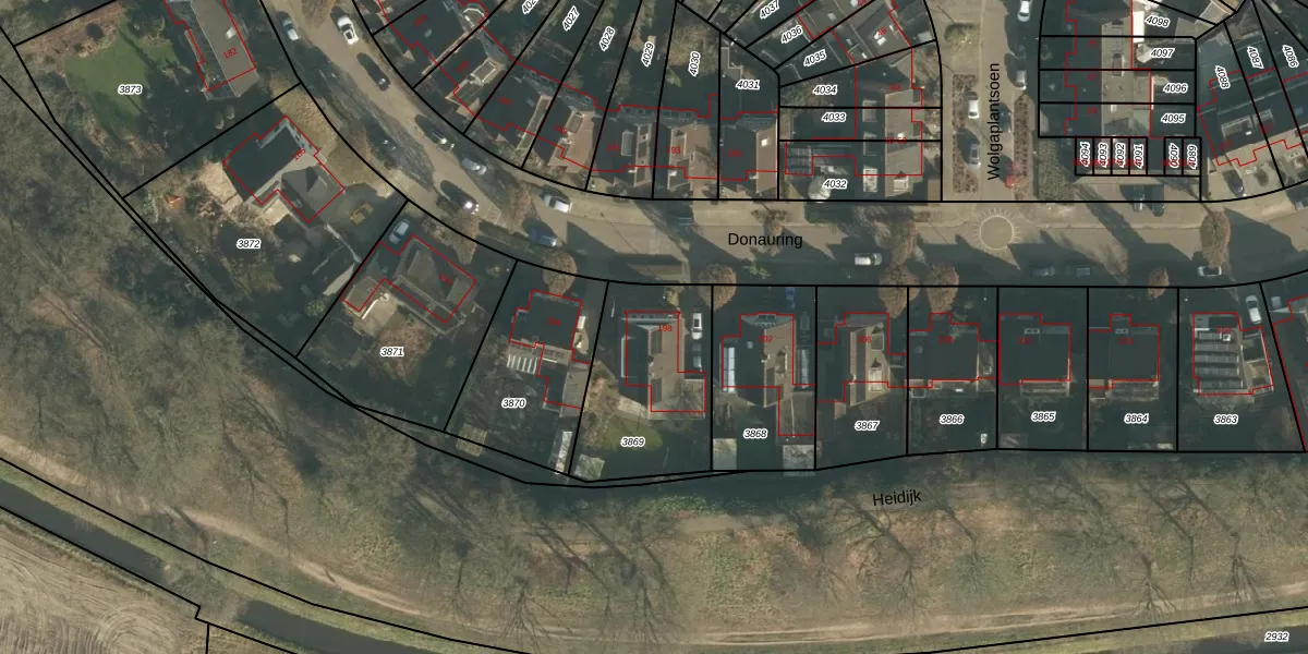 Donauring 198 is gelegen op kadastraal perceel DNN00L3869. Deze kadastrale aanduiding is uniek en wordt gebruikt door het Kadaster om eigendomsrechten en andere zakelijke rechten vast te leggen. Het perceel maakt onderdeel uit van de kadastrale gemeente Drunen.