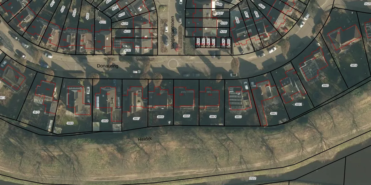 Het perceel waarop Donauring 210 staat heeft een oppervlakte van 345 m². Dit is een groot perceel. De perceeloppervlakte wordt geregistreerd door het Kadaster. Gedetailleerde informatie over de maten van dit perceel kunt u vinden in het rapport Kadastrale kaart met maatvoering van Donauring 210.