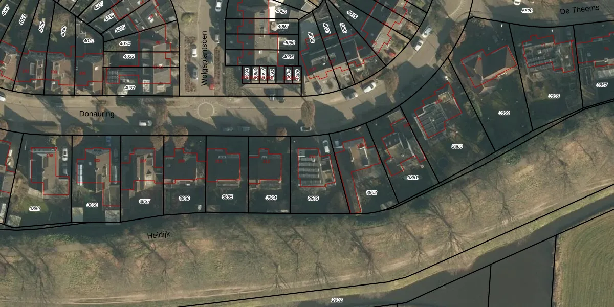 Het perceel waarop Donauring 214 staat heeft een oppervlakte van 408 m². Dit is een groot perceel. De perceeloppervlakte wordt geregistreerd door het Kadaster. Gedetailleerde informatie over de maten van dit perceel kunt u vinden in het rapport Kadastrale kaart met maatvoering van Donauring 214.