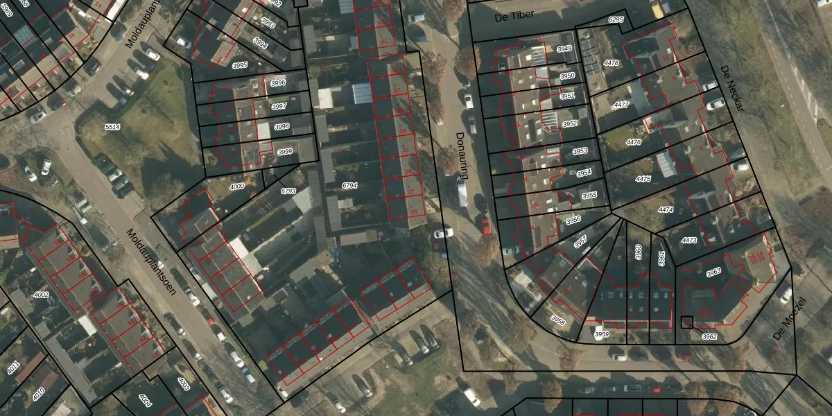 Het perceel waarop Donauring 25 staat heeft een oppervlakte van 4185 m². Dit is een zeer groot perceel. De perceeloppervlakte wordt geregistreerd door het Kadaster. Gedetailleerde informatie over de maten van dit perceel kunt u vinden in het rapport Kadastrale kaart met maatvoering van Donauring 25.