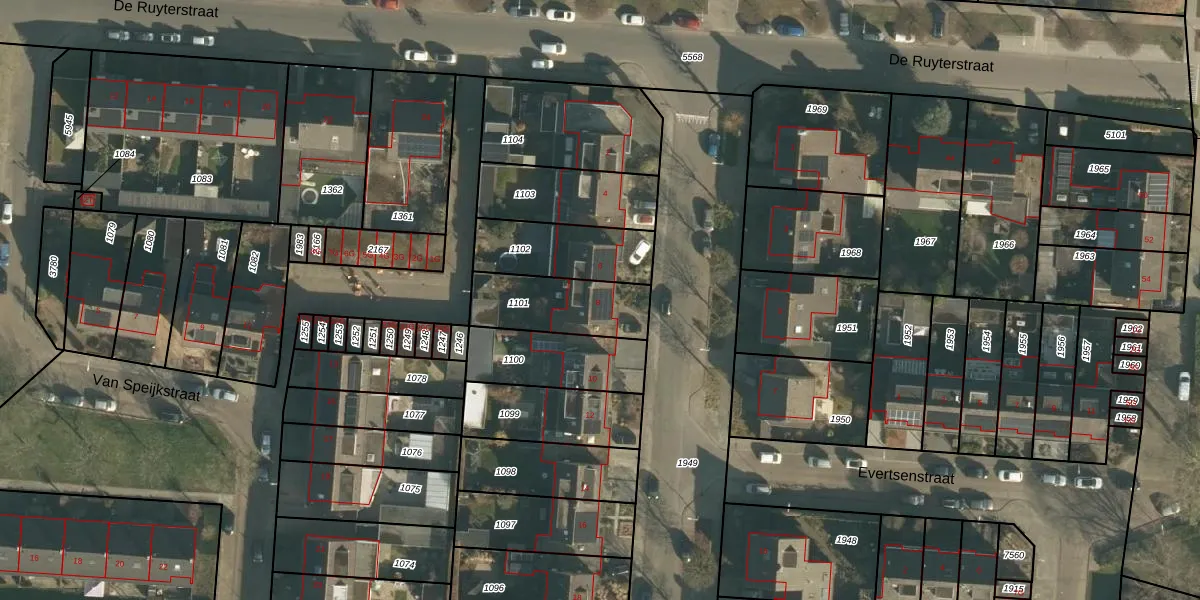 Gebruik de zoekbalk of klik op een perceel voor informatie over de adressen binnen dit perceel.