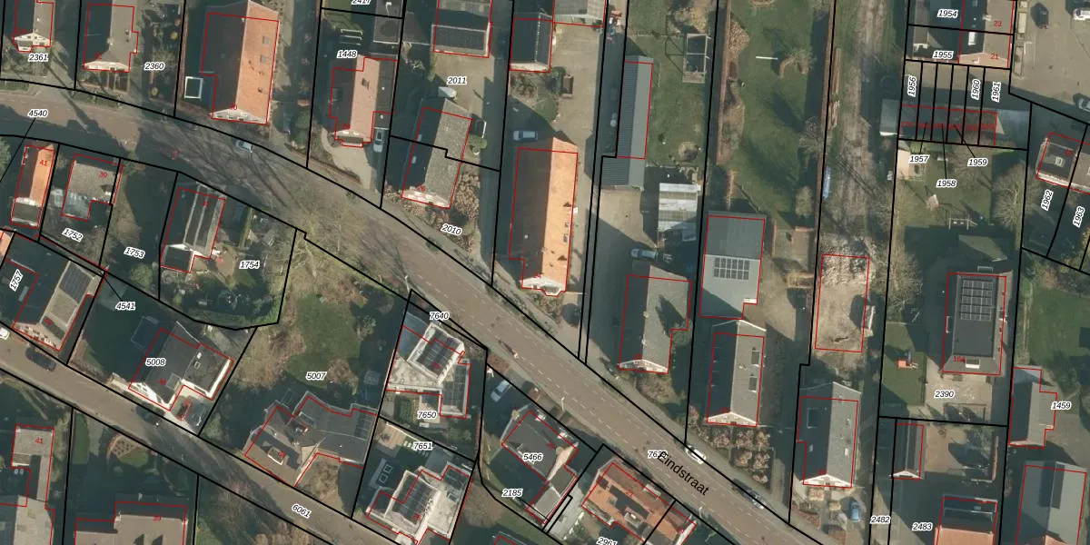 Het perceel waarop Eindstraat 24 staat heeft een oppervlakte van 3772 m². Dit is een zeer groot perceel. De perceeloppervlakte wordt geregistreerd door het Kadaster. Gedetailleerde informatie over de maten van dit perceel kunt u vinden in het rapport Kadastrale kaart met maatvoering van Eindstraat 24.