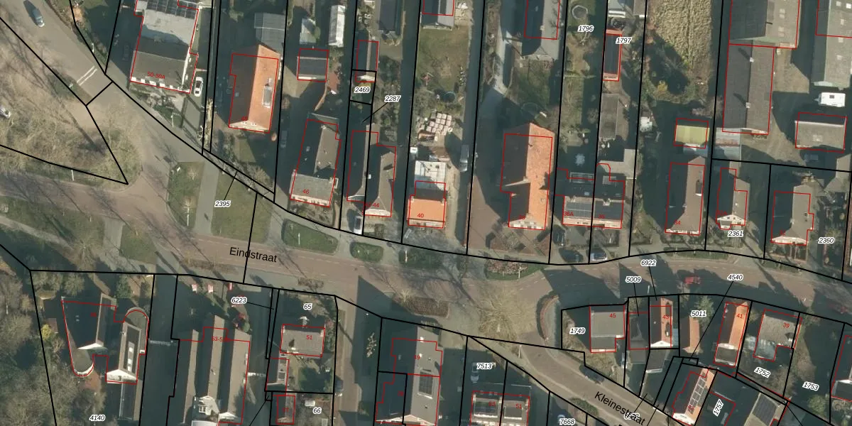 Het perceel waarop Eindstraat 40 staat heeft een oppervlakte van 2060 m². Dit is een zeer groot perceel. De perceeloppervlakte wordt geregistreerd door het Kadaster. Gedetailleerde informatie over de maten van dit perceel kunt u vinden in het rapport Kadastrale kaart met maatvoering van Eindstraat 40.
