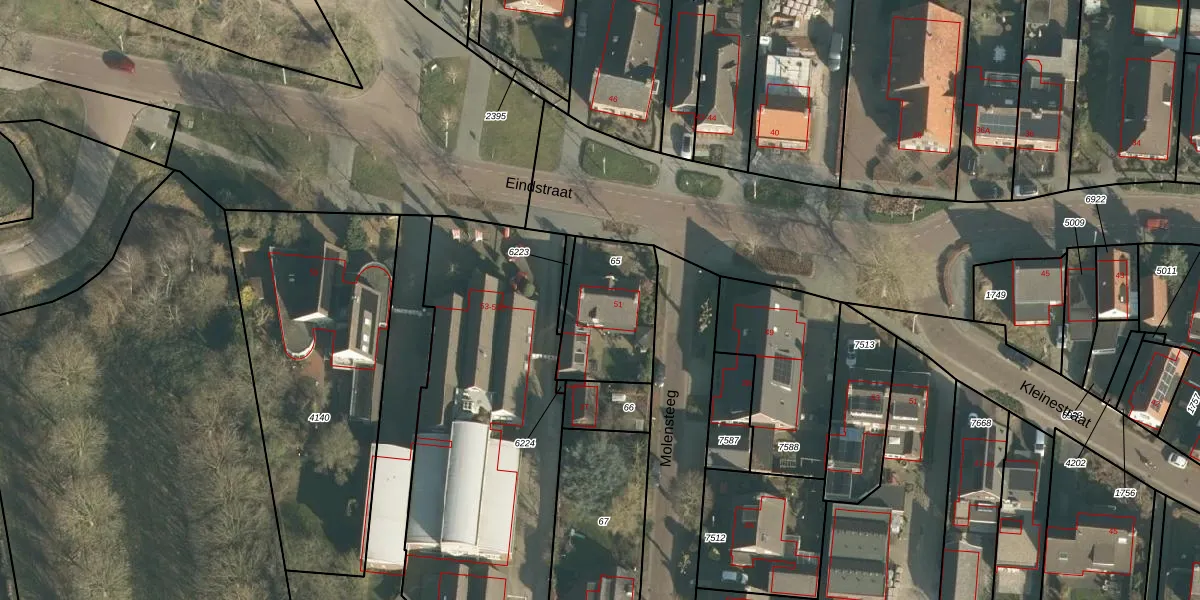 Het perceel waarop Eindstraat 51 staat heeft een oppervlakte van 345 m². Dit is een groot perceel. De perceeloppervlakte wordt geregistreerd door het Kadaster. Gedetailleerde informatie over de maten van dit perceel kunt u vinden in het rapport Kadastrale kaart met maatvoering van Eindstraat 51.