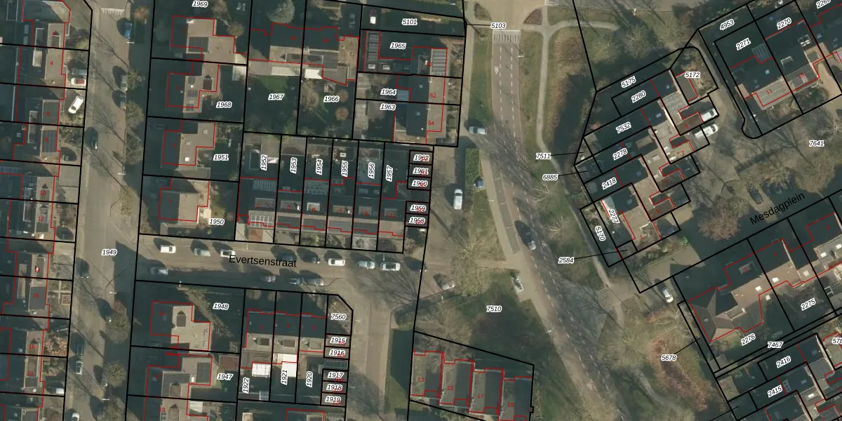 Het perceel waarop Evertsenstraat 5-G staat heeft een oppervlakte van 16 m². Dit is een klein perceel. De perceeloppervlakte wordt geregistreerd door het Kadaster. Gedetailleerde informatie over de maten van dit perceel kunt u vinden in het rapport Kadastrale kaart met maatvoering van Evertsenstraat 5-G.