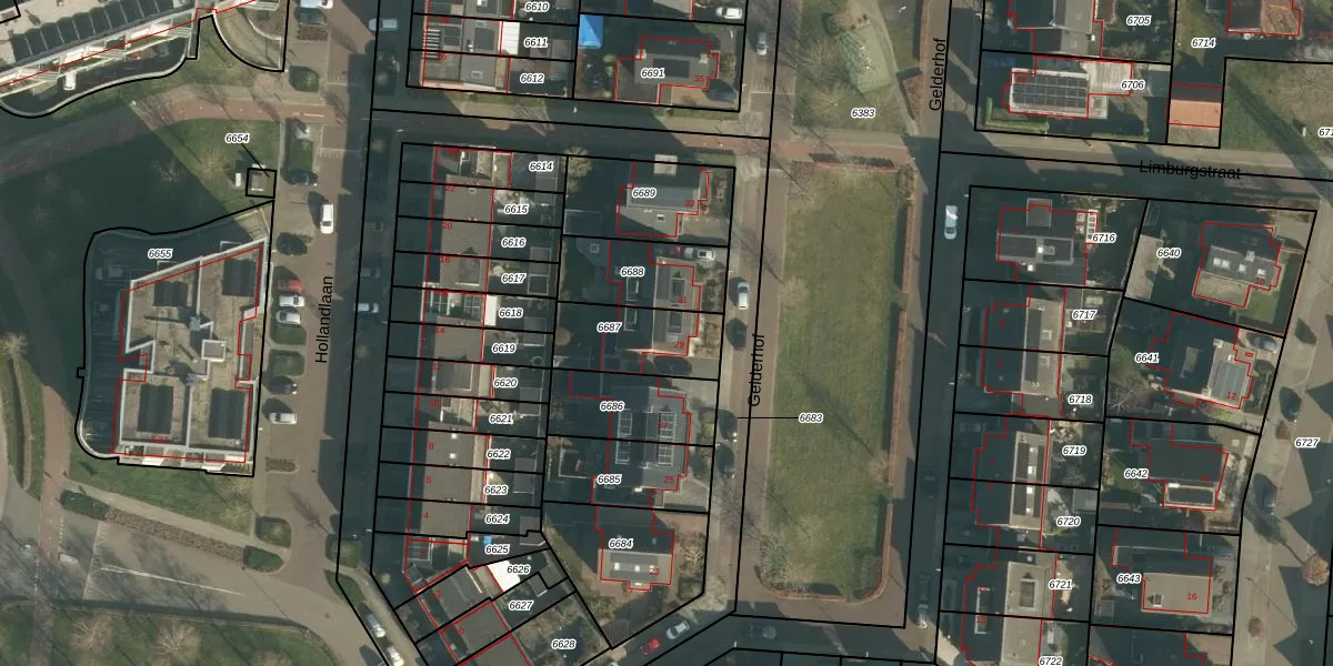 Gelderhof 29 is gelegen op kadastraal perceel DNN00L6687. Deze kadastrale aanduiding is uniek en wordt gebruikt door het Kadaster om eigendomsrechten en andere zakelijke rechten vast te leggen. Het perceel maakt onderdeel uit van de kadastrale gemeente Drunen.