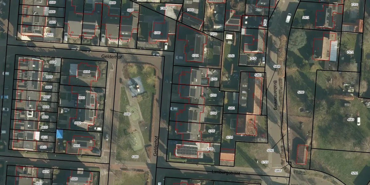 Gelderhof 57 is gelegen op kadastraal perceel DNN00L6703. Deze kadastrale aanduiding is uniek en wordt gebruikt door het Kadaster om eigendomsrechten en andere zakelijke rechten vast te leggen. Het perceel maakt onderdeel uit van de kadastrale gemeente Drunen.