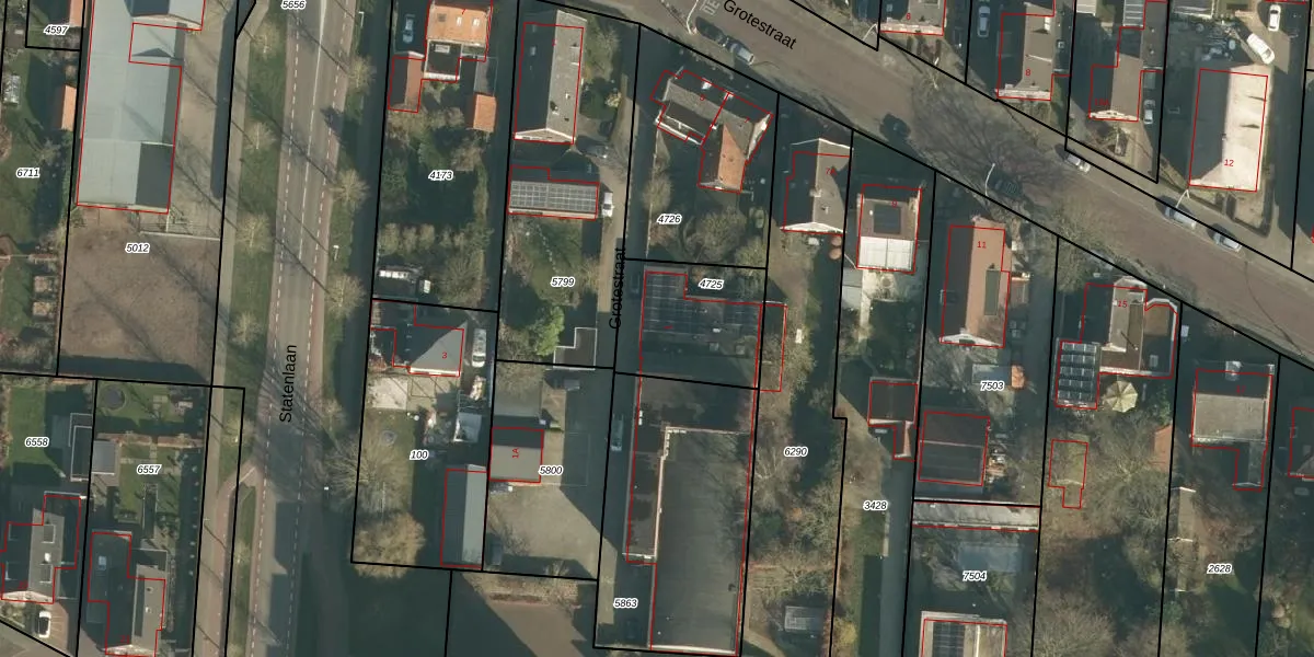 Het perceel waarop Grotestraat 1 staat heeft een oppervlakte van 395 m². Dit is een groot perceel. De perceeloppervlakte wordt geregistreerd door het Kadaster. Gedetailleerde informatie over de maten van dit perceel kunt u vinden in het rapport Kadastrale kaart met maatvoering van Grotestraat 1.
